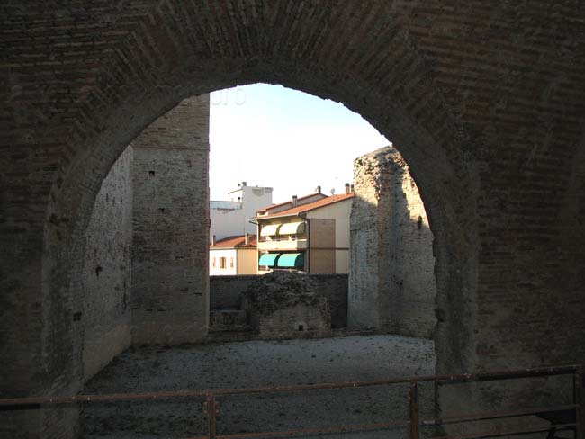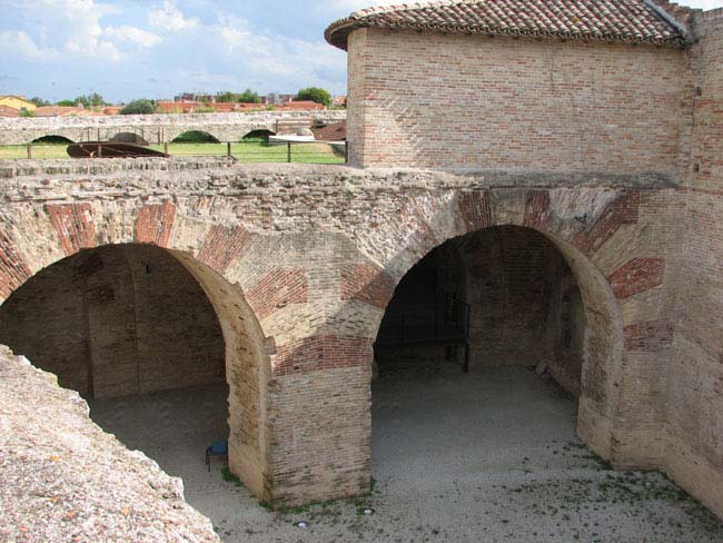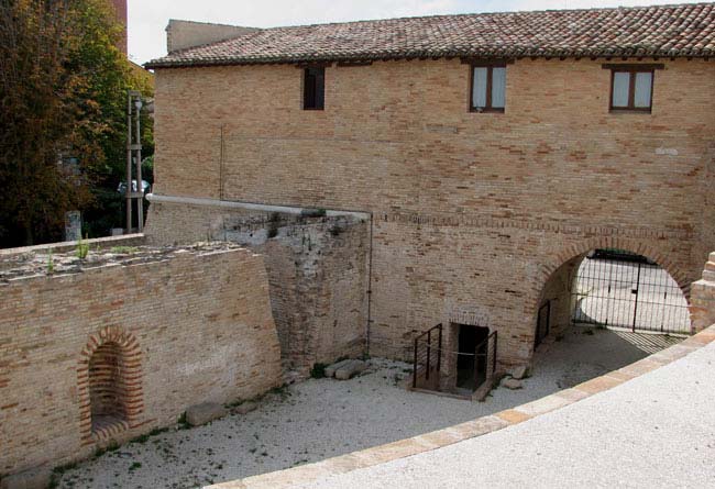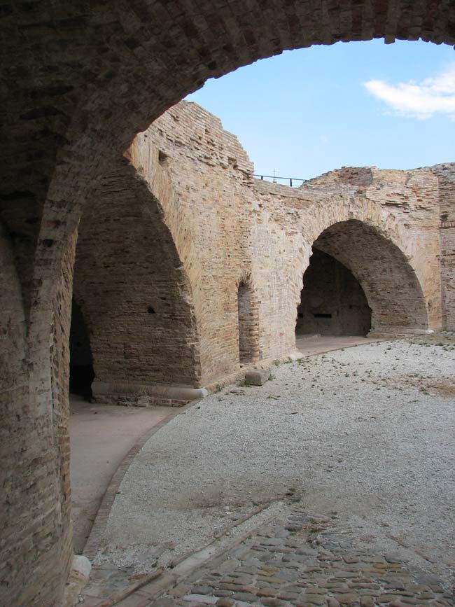 Bastione Sangallo a Fano: cortile della piazza bassa a mare con i due archi della loggia, agosto 2007