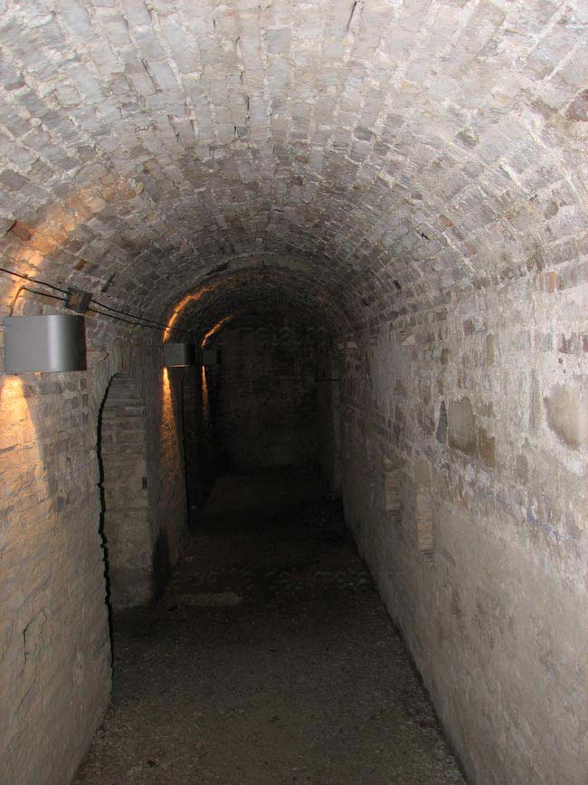 Bastione Sangallo a Fano: galleria di scarpa lungo il lato Sud-Ovest, agosto 2007