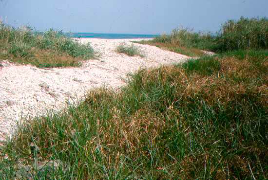 Bassura umida nel retrospiaggia con Bolboschoenus maritimus, tratto circa 1 km a N.O. della foce del Metauro, 1974