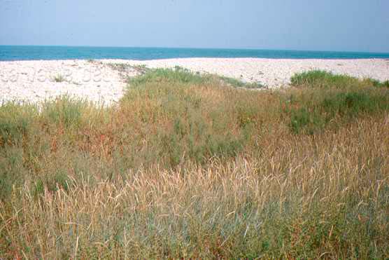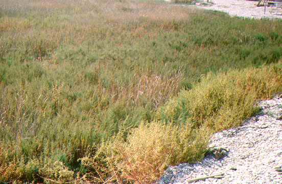 Bassura umida retrodunale con Roscano, Salicornia e Raspano, tratto circa 1 km a N.O. della foce del Metauro, gennaio 1974