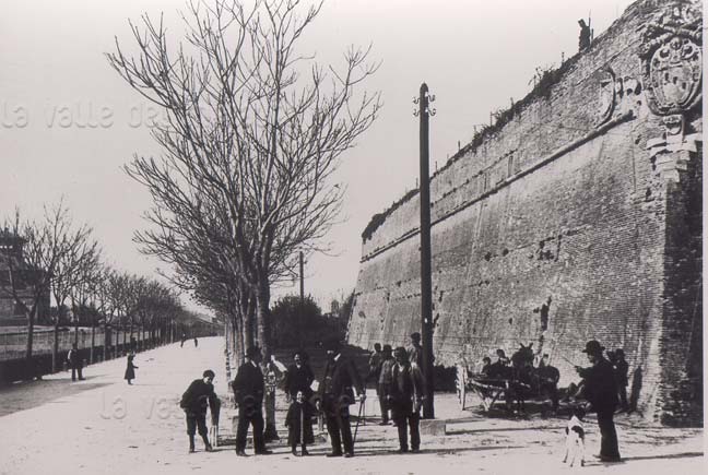 Bastione Sangallo a Fano (foto G. Baviera, fine 1800-primi del 1900). A sinistra quello che attualmente si chiama Viale XII Settembre, con gli ailanti ancora giovani