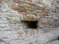 Bastione Sangallo a Fano: cortile della piazza bassa a monte, archibugiera per tiro angolato, agosto 2007