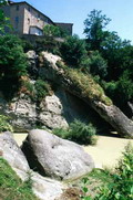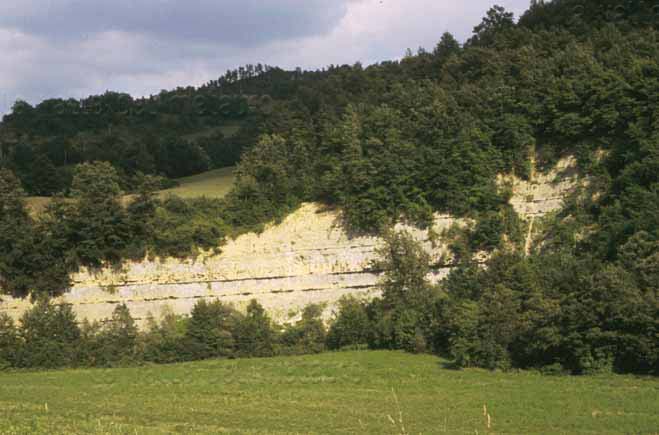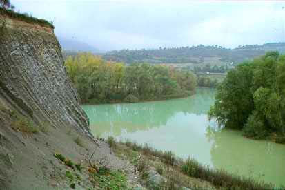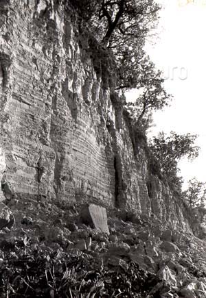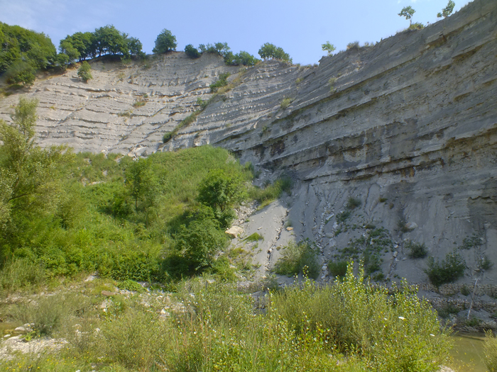 Ripa con strati subverticali alla confluenza Candigliano-Metauro, novembre 1987