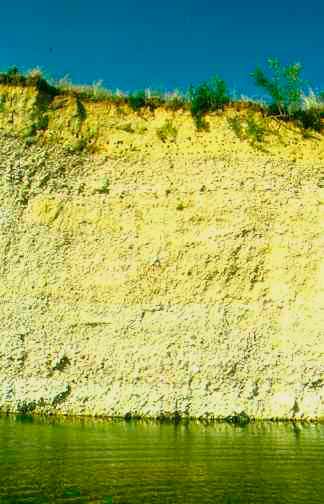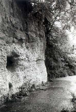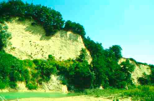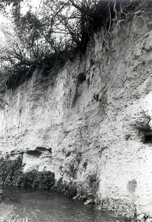 Ripa d’erosione lungo il Metauro a valle di Fossombrone, 1984. Sulla parte superiore si scorgono i nidi dei Topini, scavati nei sedimenti limoso-sabbiosi
