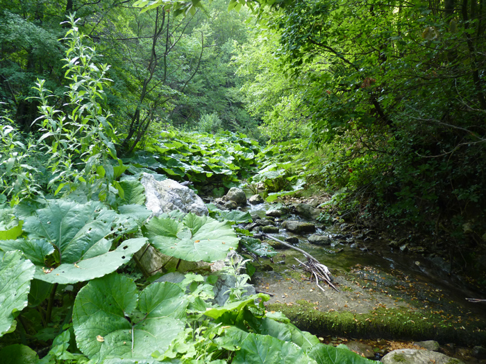 Rio Vitoschio (Gruppo del Nerone), luglio 2011. Si notano Petasites hybridus ed Eupatorium cannabinum