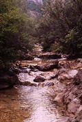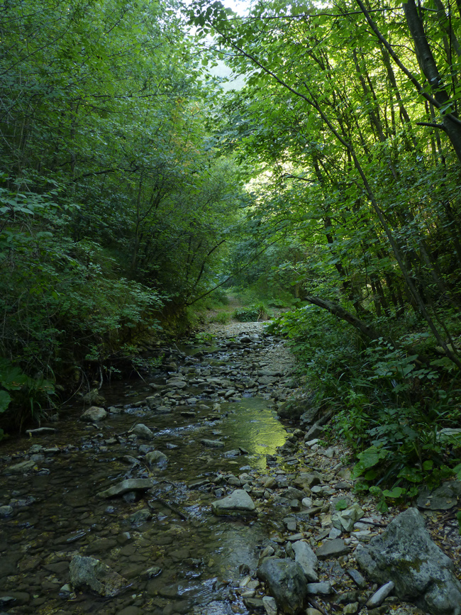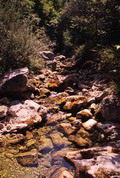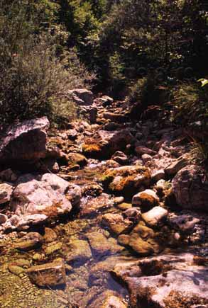 Rio della Gazza, 1987. In secondo piano, sul pendio, un boschetto (querceto di roverella)
