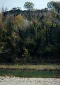 Ripa boscata in riva destra del F. Metauro in loc. Ghilardino (Fossombrone), dicembre 2003. Nella parte più lontana dall'acqua crescono la Roverella ed altre specie non legate all'acqua