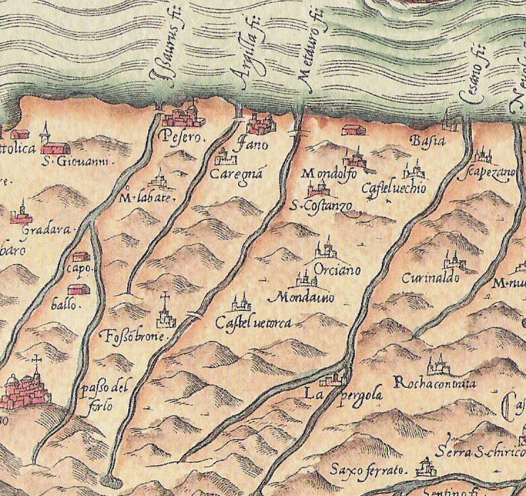 Rocca di Carignano. Mappa "La Marca d'Ancona", di Vincenzo Luchino, Roma 1564 (da: suppl. de "Il Resto del Carlino" del 26-4-2006)