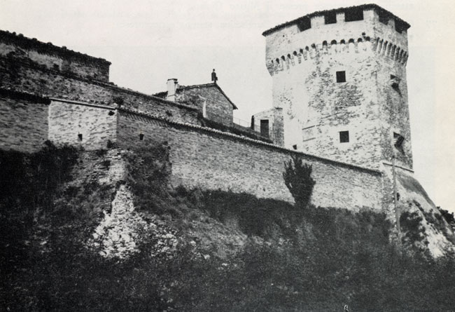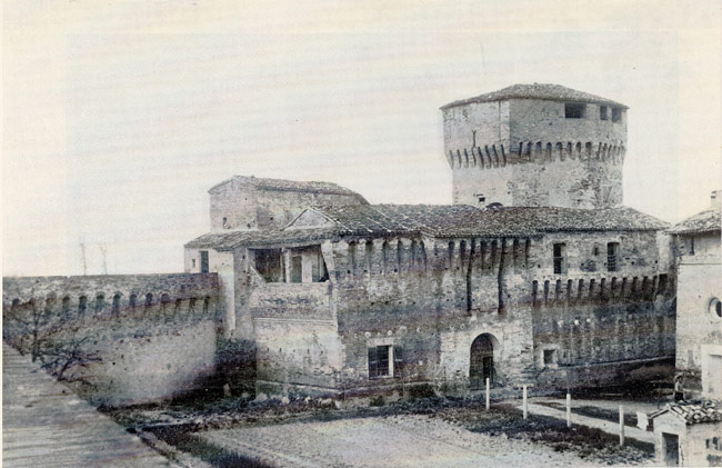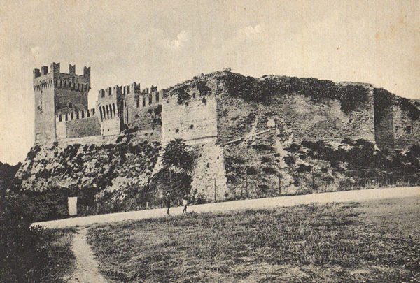 Rocca Malatestiana di Fano, cortile interno con la rocchetta e dietro il mastio, primi del 1900 (foto d'epoca)