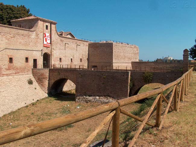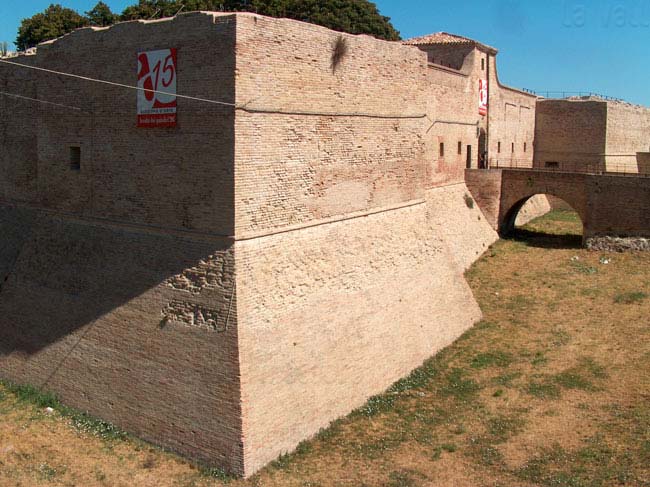 Rocca Malatestiana a Fano: ingresso visto dalla terrazza sopra il Torrione Est, agosto 2007