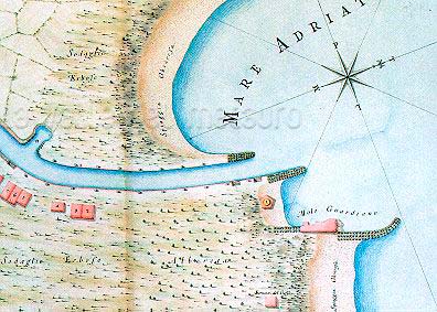 Salvatore Piccioli (?). Pianta dimostrativa del porto di Fano, 1790 circa. Biblioteca Nazionale di Firenze (da DELI, 1993)