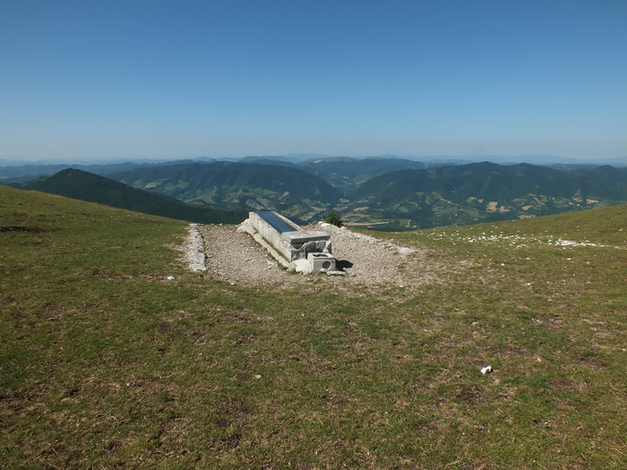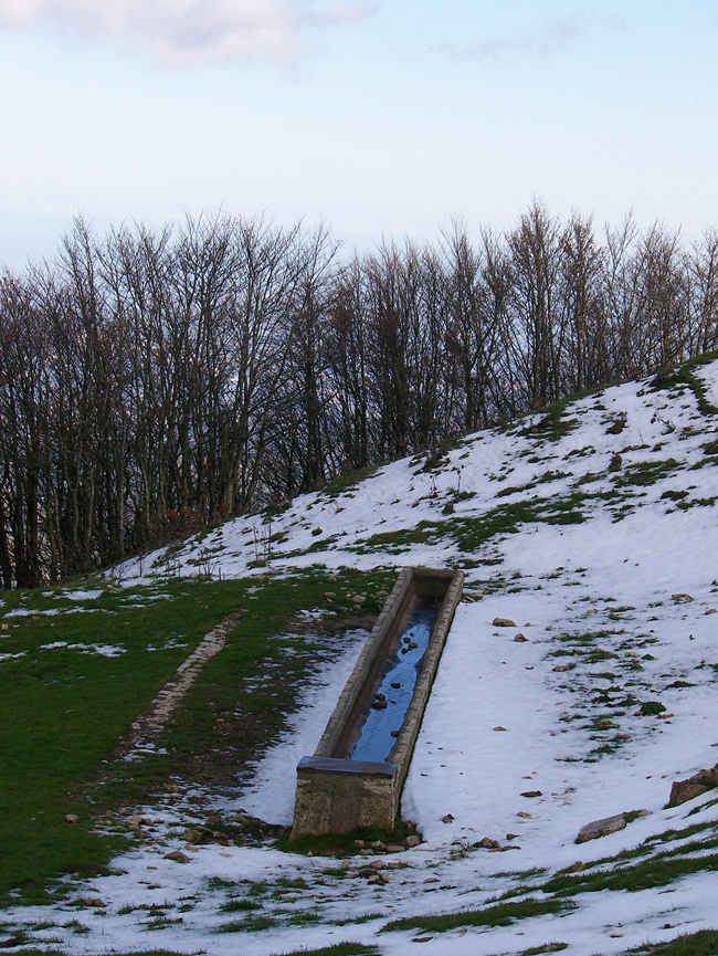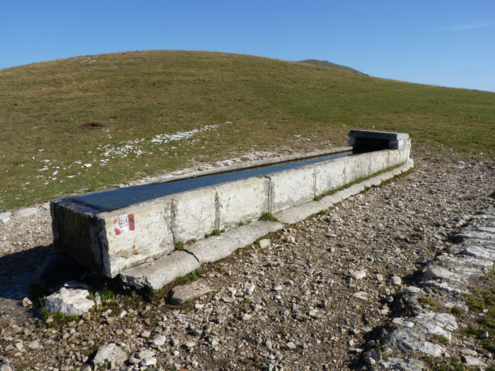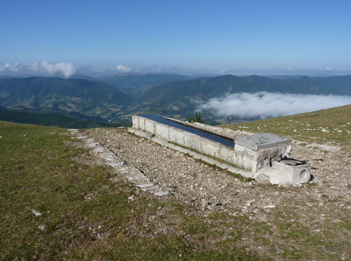 Abbeveratoio a Bocca della Valle sul M. Acuto (Cantiano), giugno 2012. Sullo sfondo al centro la valle del T. Burano, a destra la Serra di Burano, a sinistra il M. Picognola