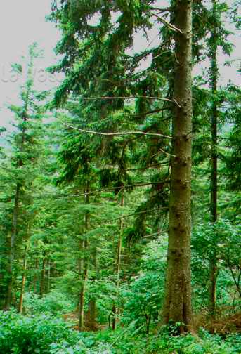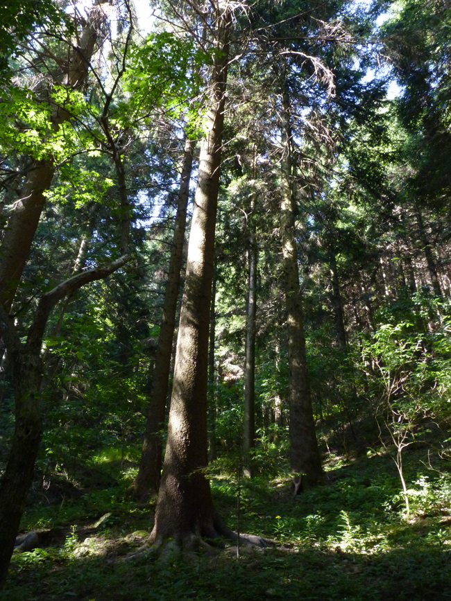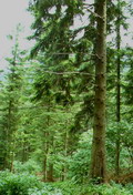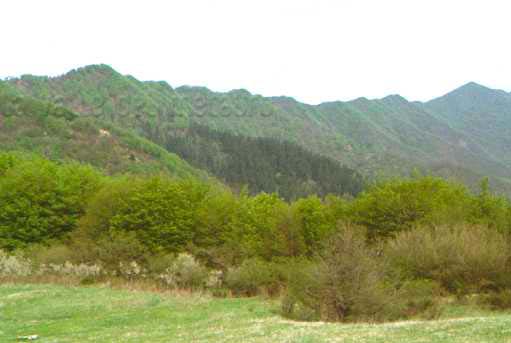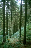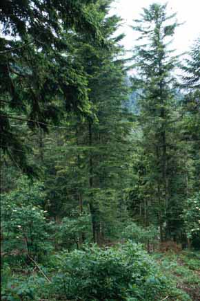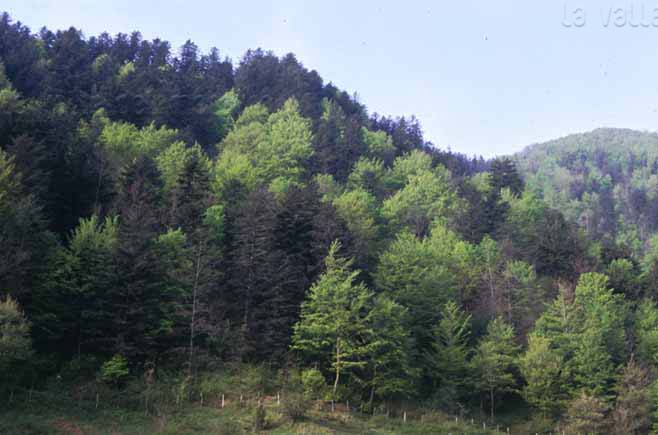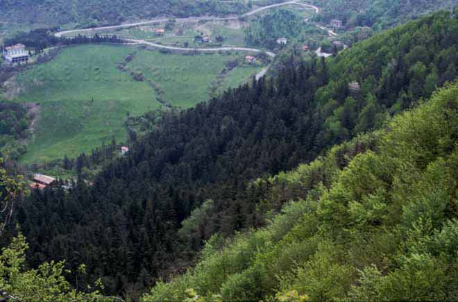 Abetina di Fonte Abeti a Bocca Trabaria, 1987. L'abetina risalta per il suo colore verde scuro rispetto ai boschi di caducifoglie circostanti