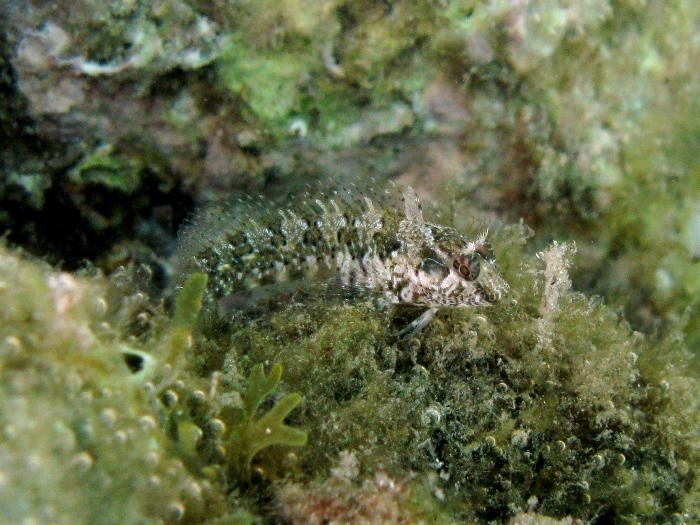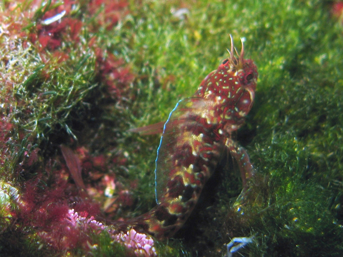 Bavosa pavone maschio di 11,5 cm, particolare della testa. Porto di Fano, agosto 2006