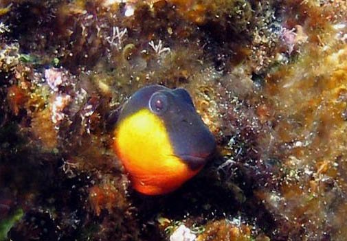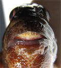 Bavosa ruggine di 15 cm, particolare della bocca. Scogliere di Fano, luglio 2006