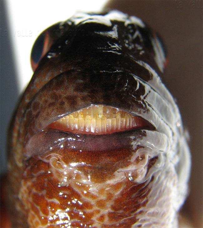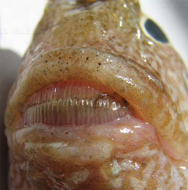 Bavosa occhiuta di 16,5 cm, particolare della bocca. Pescherie di Fano, luglio 2006