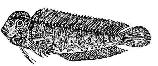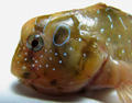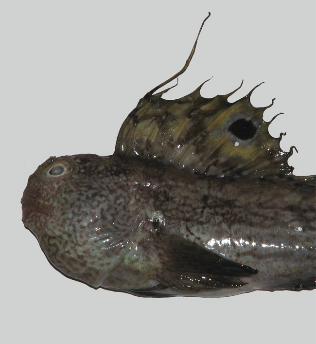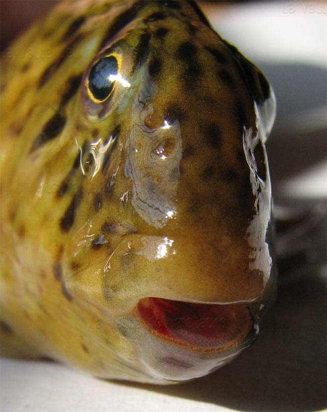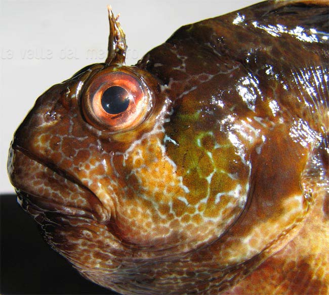 Bavosa occhiuta di 16,5 cm, particolare della testa. Pescherie di Fano, luglio 2006