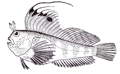 Bavosa occhiuta di 16,5 cm, particolare della pinna dorsale. Pescherie di Fano, luglio 2006