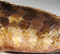 Bavosa ruggine di 15 cm, particolare della colorazione del fianco. Scogliere di Fano, luglio 2006