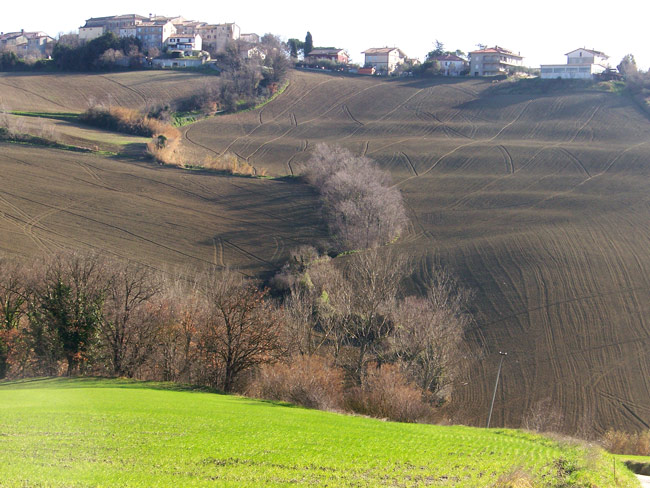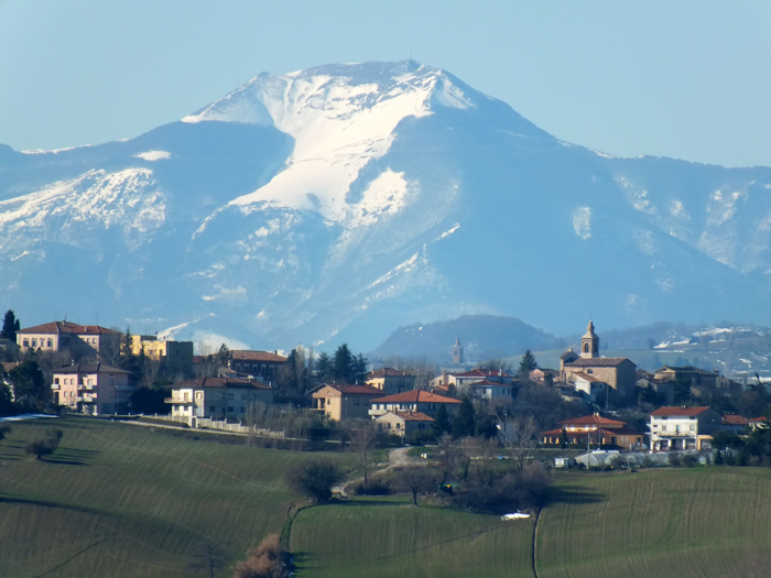 San Giorgio di Pesaro visto da N.E., con sullo sfondo il M. Catria, marzo 2012