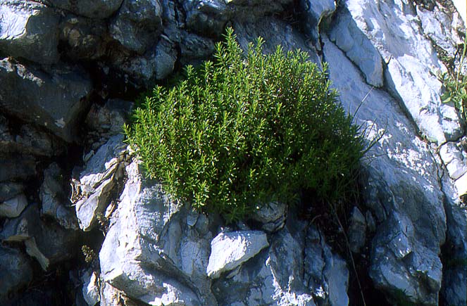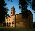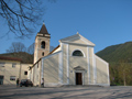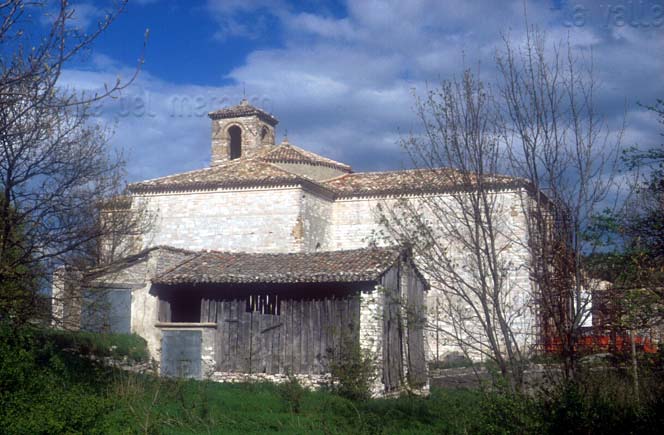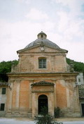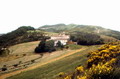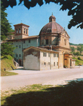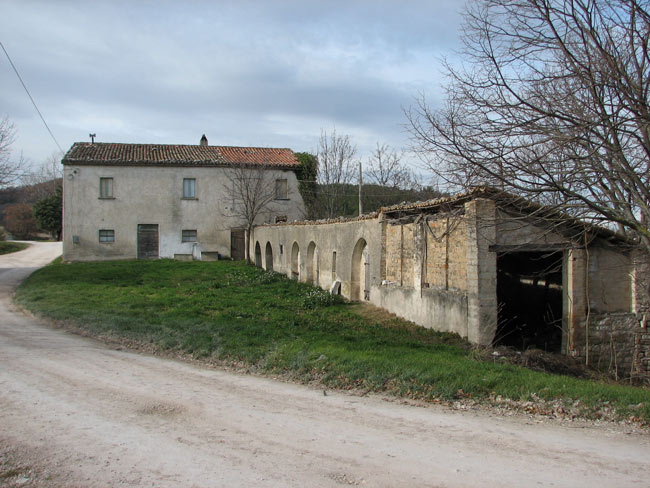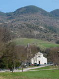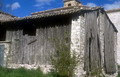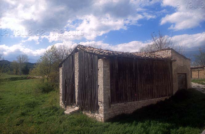 Santuario della Madonna delle Stelle a M. Martello, aprile 2001. In primo piano un fienile in pietra e legno
