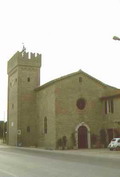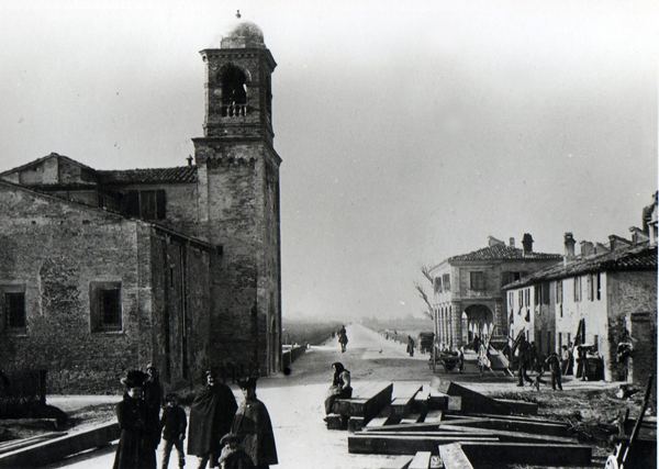 Santuario della Madonna del Ponte a Fano, con torre a campanile crollata nel 1930 (foto G. Baviera, fine 1800-primi del 1900)
