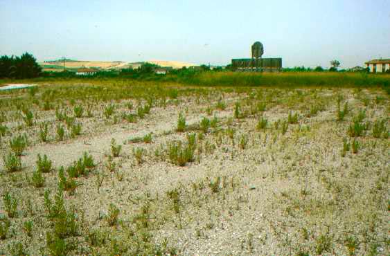 Sbancamento di terra a Torrette di Fano. Alcune coppie di Corriere piccolo utilizzano da anni questo terreno, spianato e coperto di pietrisco, posto a 500 m dalla linea di costa
