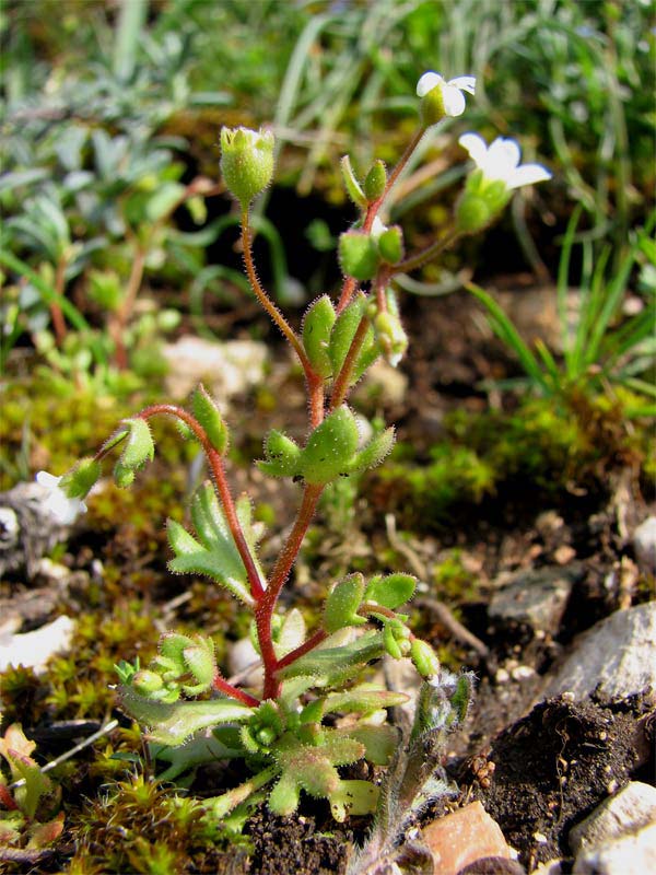 Saxifraga tridactylites, zona sommitale del M. Paganuccio (Monti del Furlo), aprile 2009