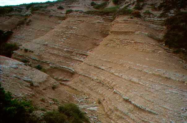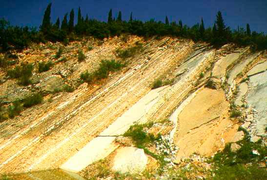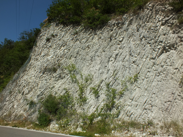 Scaglia Cinerea lungo la strada che percorre le pendici di N.E. del M. Nerone, tra Acquanera e S. Lorenzo (da: CRESTA 1999)