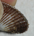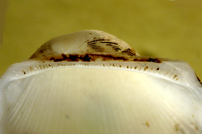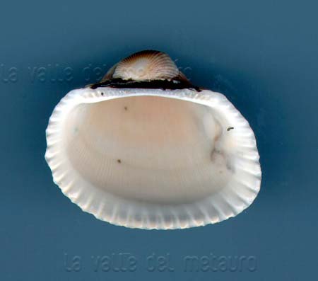 Scapharca demiri di 21 mm (cerniera valva destra), spiaggiata a Fano, novembre 2011