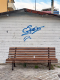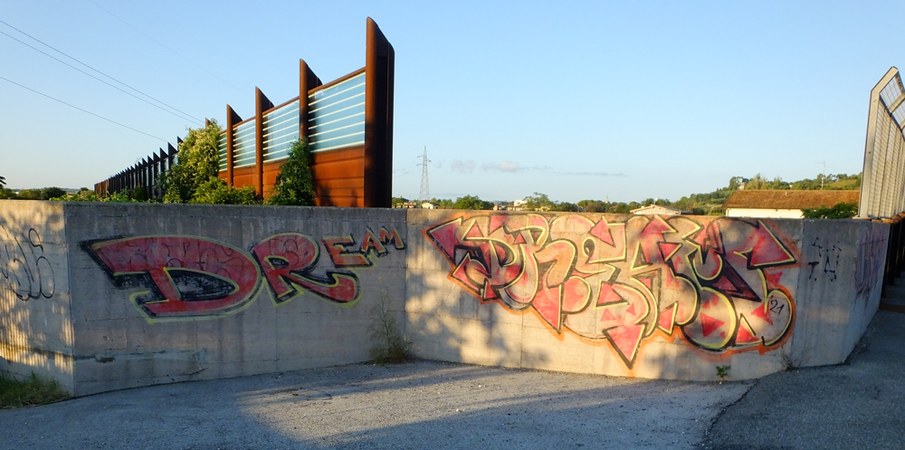 Scritta in stile graffiti lettering, zona di Fano verso il mare, luglio 2025