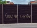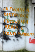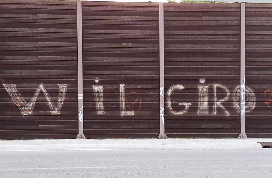 Scritta su barriera antirumore alla periferia di Fano, luglio 2025. Il Giro d'Italia ha avuto una tappa con arrivo a Fano nel maggio 2024