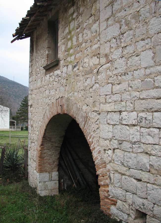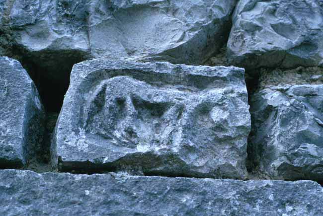 Scultura nel muro esterno della Chiesa di S. Pietro di Massa (Cagli), 1996. E' rappresentato un asino o un lupo
