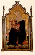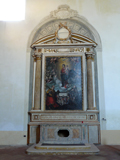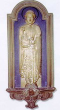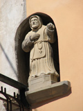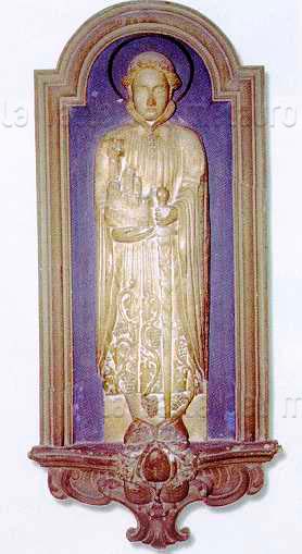 Scultura sulla porta ricavata alla base del campanile della chiesa di San Giuseppe a Sant'Ippolito, agosto 2007