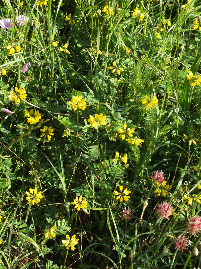 Securigera securidaca, T. Bosso a monte di Cagli, giugno 2013. Al margine Trifolium stellatum e Convolvulus cantabrica