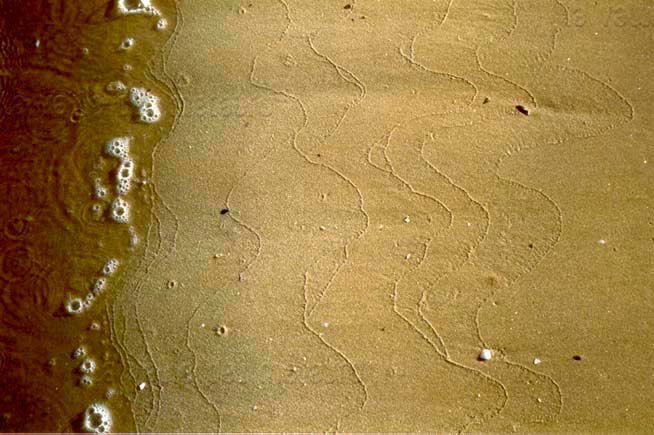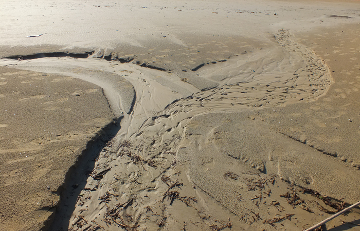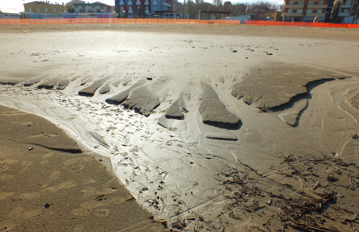 Segno lasciato dalle onde che si ritirano in occasione di una mareggiata, spiaggia Lido di Fano, novembre 2012