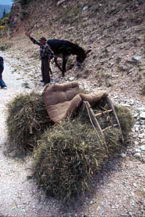 Sella con struttura per il trasporto del fieno, rovesciata a terra. Dintorni M. Catria presso Isola Fossara (Umbria), 1977
