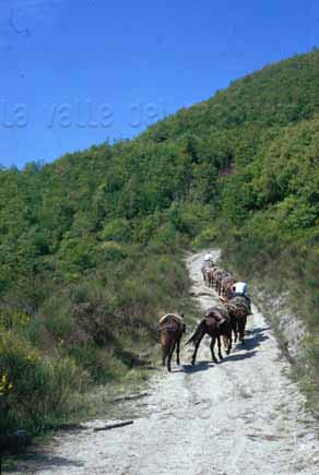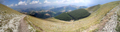 Sentiero che discende il versante Est del M. Catria (panoramica), agosto 2012. In basso la faggeta detta Bosco Rotondo