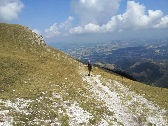 Sentiero che discende il versante Est del M. Catria (vista all'indietro), agosto 2012