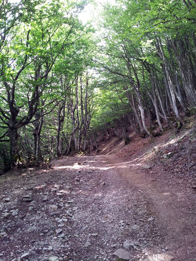 Sentiero che attraversa la faggeta sopra il Rifugio della Vernosa, M. Catria, agosto 2012