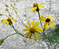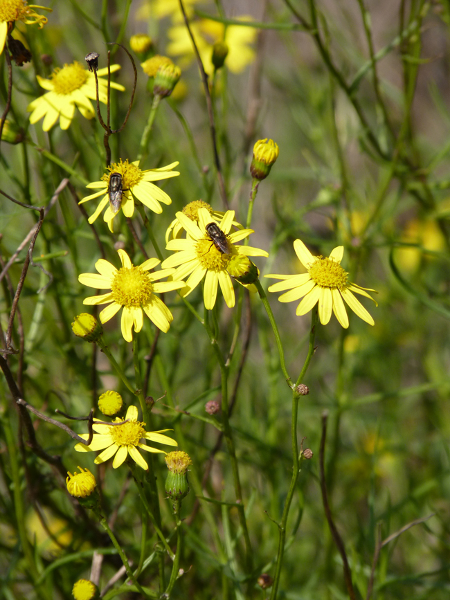 Senecio inaequidens, terrapieno ferroviario lungo la spiaggia di Baia del Re a Fano, maggio 2025