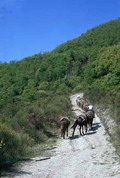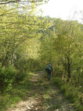 Sentiero CAI n. 54 nel versante Sud-Ovest del M. Catria, giugno 2012. E' visibile un tornante della strada che sale da Pian d'Ortica