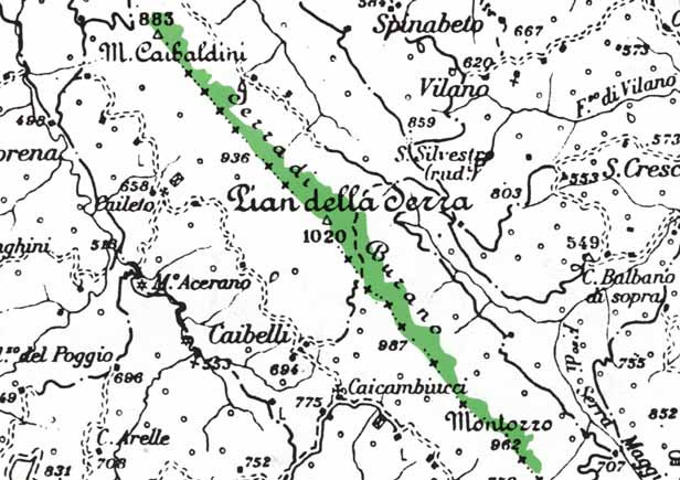 Serre del Burano, emergenza botanico-vegetazionale BA, carta 1:100.000 (Da BALLELLI e PEDROTTI 1992)