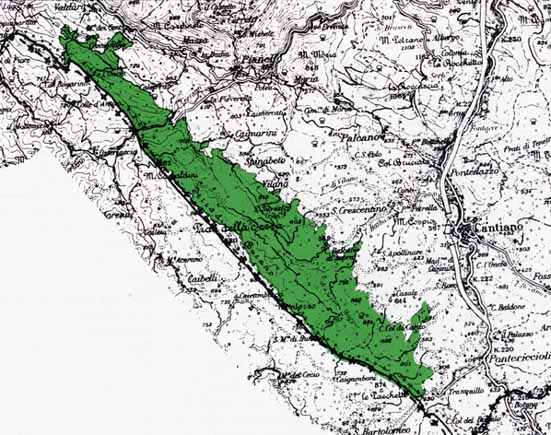 Serre del Burano, emergenza botanico-vegetazionale BB, carta 1:100.000 (da BALLELLI e PEDROTTI 1996)