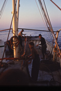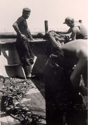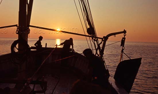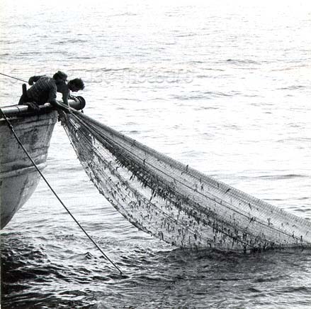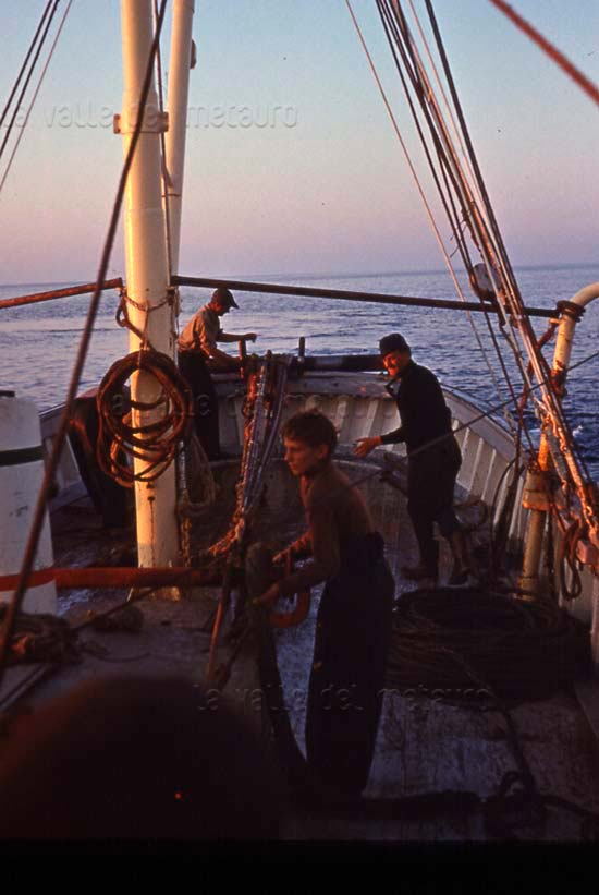 Si salpa la rete a strascico (tartana) sul peschereccio Dea Fortuna di Fano, Adriatico, 1972
