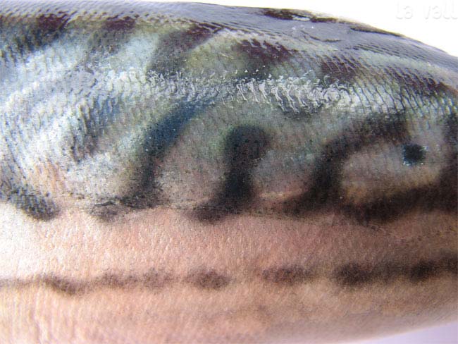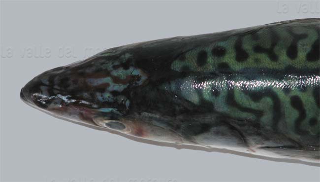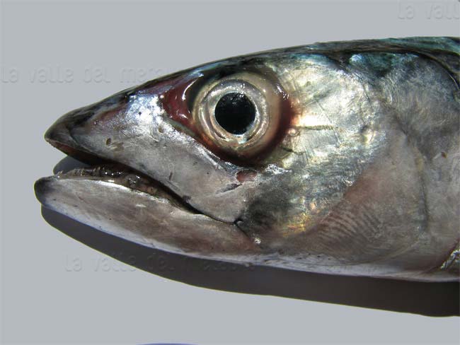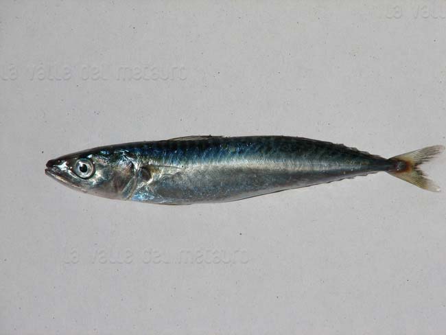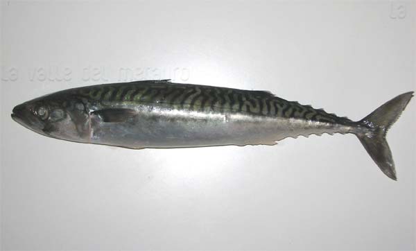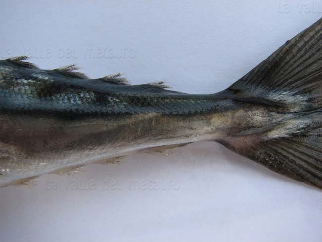 Sgombro di 33 cm, pinnule e peduncolo caudale con due carene. Pescherie di Fano, giugno 2006