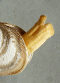 Sifoni di Schiavone (Solen marginatus). A sinistra il mollusco è a riposo, a destra in allarme (dis. V. Dionisi)
