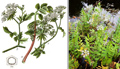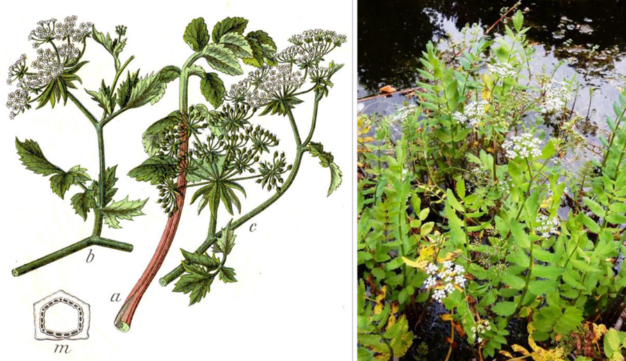 Berula erecta (da: STURM J.G., 1796 - Deutschlands Flora in Abbildungen, modif., public domain); a dx: B. erecta, ottobre 2019 (foto Saxifraga - E. Stikvoort, http://www.freenatureimages.eu, licenza CC BY-NC-SA)