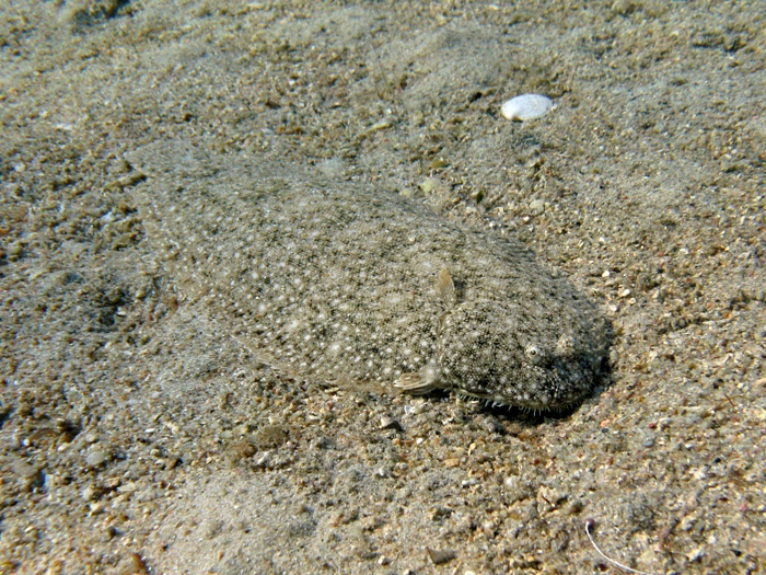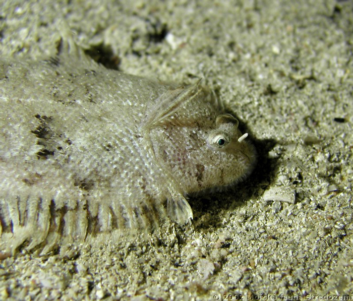 Sogliola fasciata di 12,5 cm, particolare della testa. 2,8 miglia al largo di Pesaro, luglio 2006