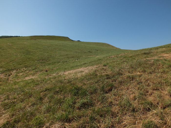 Sommità del M. Catria, agosto 2012. In primo piano una trincea di frana semiriempita di detrito